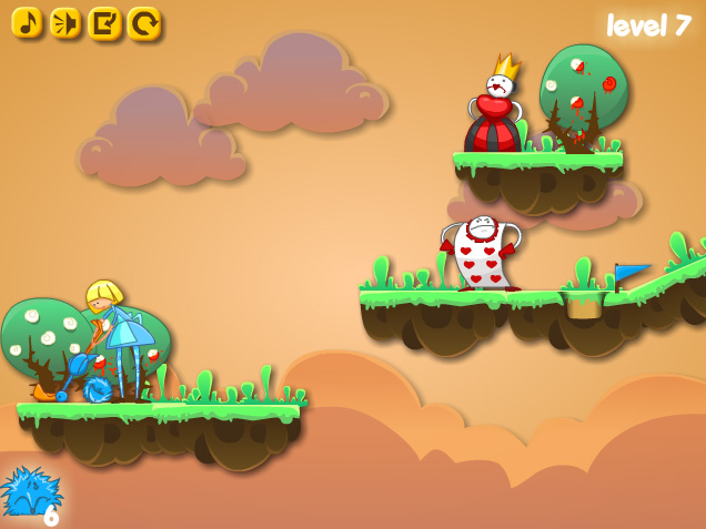 Playing on the fairy tale "Alice in Wonderland". The essence of the game to beat the queen of croquet.