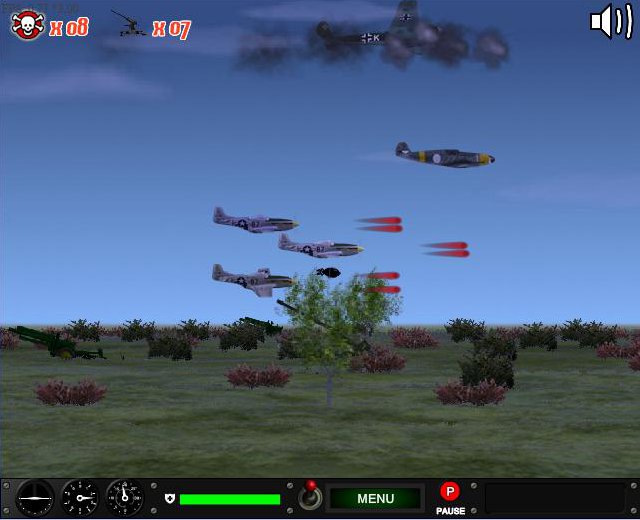Fly a P51 Mustang or a Supermarine Spitfire fighter plane and destroy the German Luftwaffe with your three favorite wing-men!