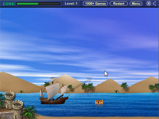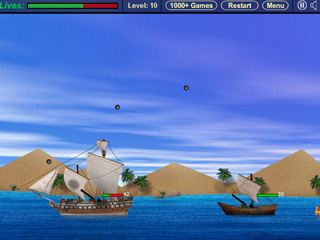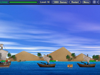 It is war and you are the captain of the last survived ship. Your mission is to protect your castle and stop the enemy invasion at all cost. Destroy all enemy ships to complete level. Aim with mouse, click left mouse button to set the cannon power and release to fire.