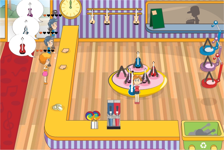 Help Hana to serve all clients in his new music store.
