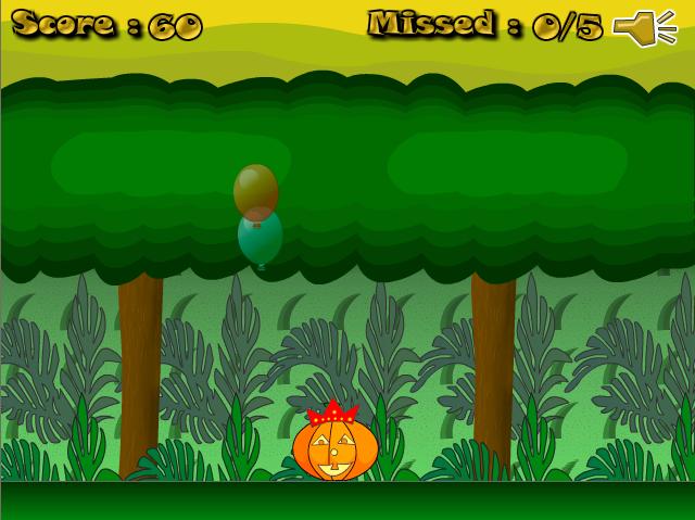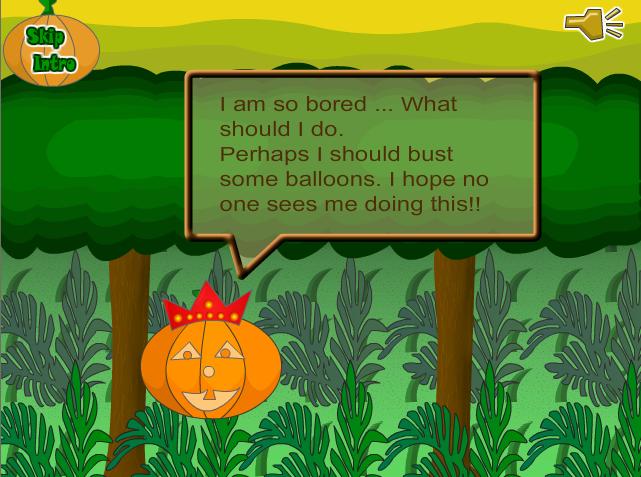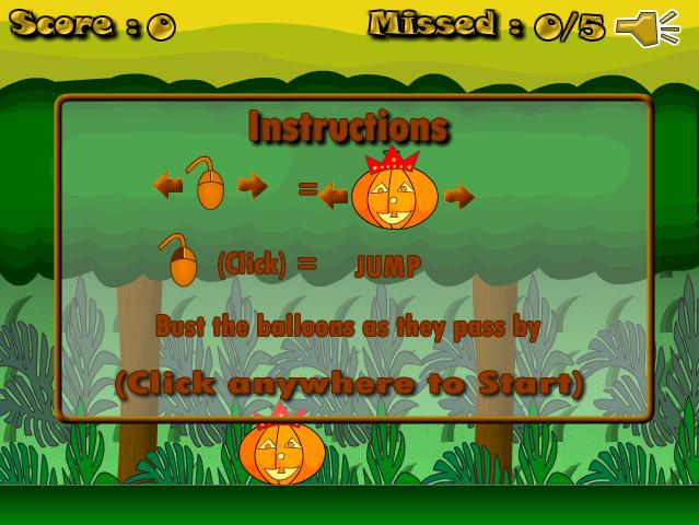 King Pumpkin was alone and bored in his kingdom. He doesn't knew what he should do, so he decided to bust some balloons. Move the mouse to move the King.