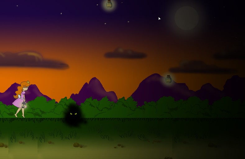 Princess run and you need to kill monster with mouse. Press LMB drag and release.nnPrincess has lamp with limited amount of oil. You need to collect oil or darkness will capture you.