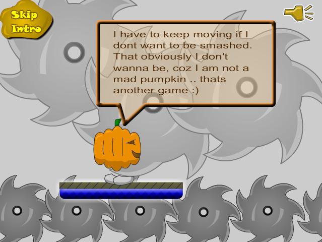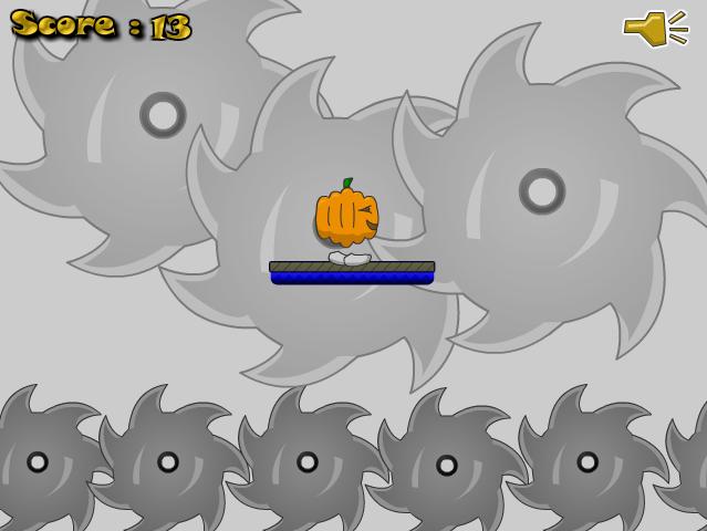 Pumpkin was in the Fruit Factory. On the route to his escape he has to walk endlessly on a rotating platform. If he walks too far or doesn’t walk he will fell down. Use Left and Right Arrows (or 'A' and 'D') alternatively, to keep the pumpkin walking. Don't make him fall off for as long as possible.