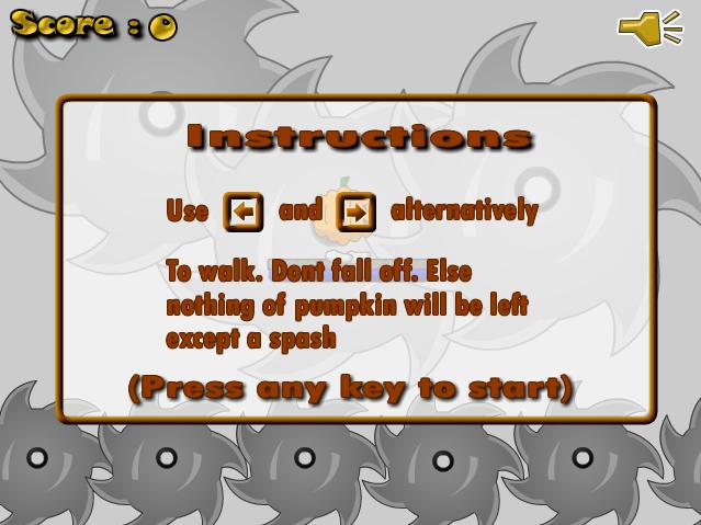 Use Left and Right Arrows (or 'A' and 'D') alternatively, to keep the pumpkin walking. Don't make him fall off for as long as possible.