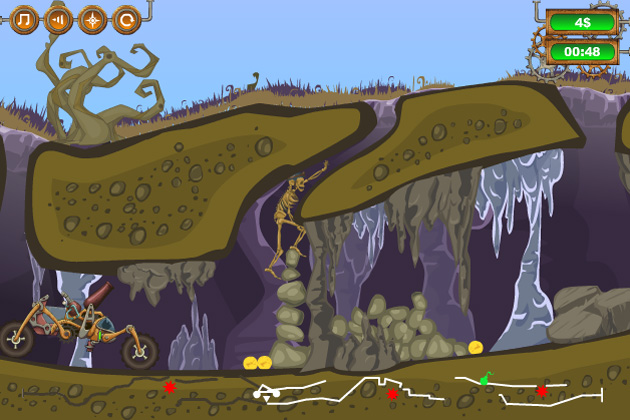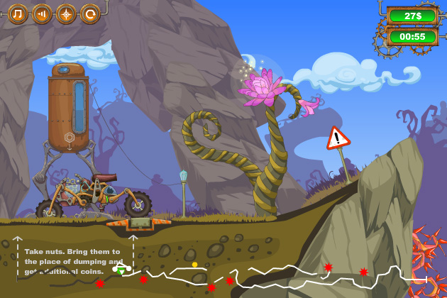 On Topy’s way there are many traps and surprises and additional tasks, which can bring him money to upgrade his vehicle. W - forward