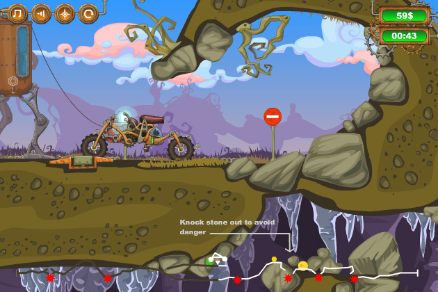 Little Topy is an inventor, he likes fast riding! But his world has many obstacles on the road that is why Topy equipped his vehicle with the gun, which helps him to solve road riddles.