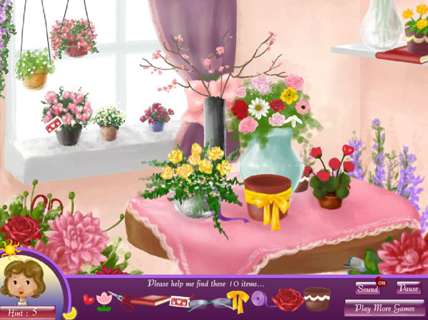 New romantic hidden object game with flowers, hearts and a lot of love! Tom is so in love with Liza, his girlfriend. Tonight is Liza's birthday, and Tom wants to give her surprise... He is going to propose her! So he goes to the flower shop and asks to choose the right flowers and arrange the bouquet for him. Your task is to help Tom to find all hidden hearts, then flowers and items for bouquet. Then your task will be to create the bouquet and Tom will propose Liza tonight!