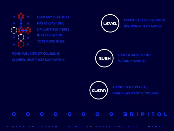 Gather up and remove pieces from board. 3 different modes to enjoy. Click any piece which can see at least one similar piece in four directions over any distance. They will be gathered up and removed.