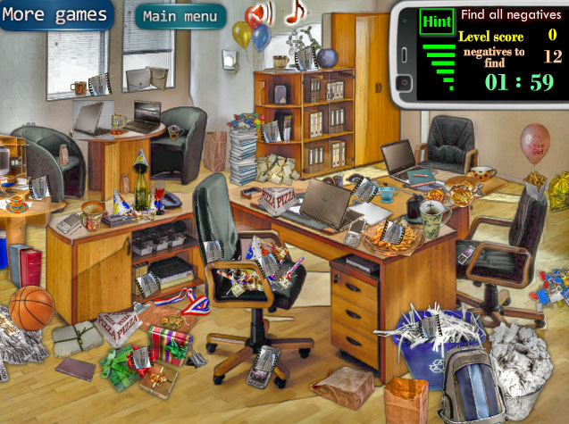 Try new hidden object game from Free-Game-Planet.com. Irea celebrated her birthday in office today and now her task is to clean the room before new work day started. Help her to do this. This games includes three bright levels with quality graphics.