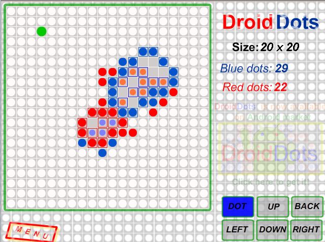 DroidDots is strategy game, the rules are similar to those of Go. Each player used a different colour of dots. Each takes turn to make dot and create regions of territory that surround the enemy points. The winner is the person who surrounds the most points. Each takes turn to make dot and create regions of territory that surround the enemy points. The winner is the person who surrounds the most points.