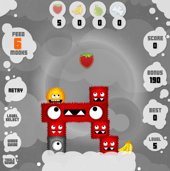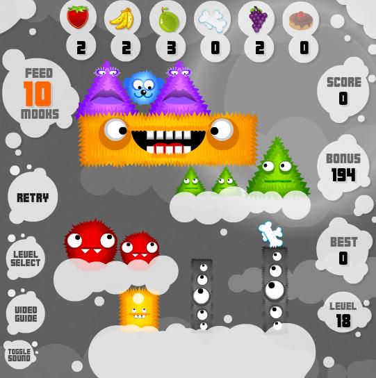 Help fill the belly of a Mook today! In this unique physics game which blends genres Drag and drop the coloured fruit to a mook of the same colour to feed and remove it from the pile.