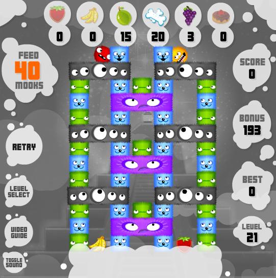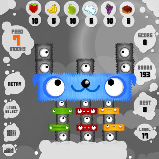 Drag and drop the coloured fruit to a mook of the same colour to feed and remove it from the pile.rnrnYou need to feed a certain amount of mooks on each level to progress.rnrnReplay levels to try and get the highest score!