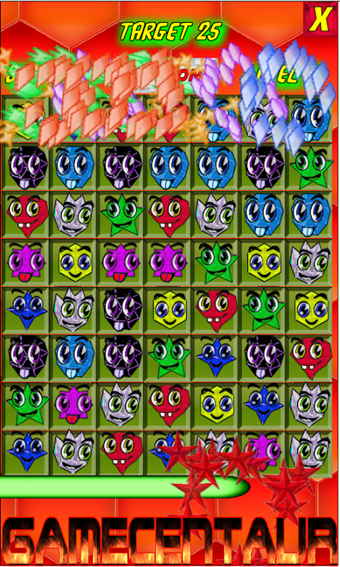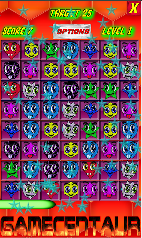 A match 3 type game where you line up the jewels and watch them explode with cute laughing sounds Line the happy jewels either vertically or horizontally to see them explode.In later levels more combos become available.